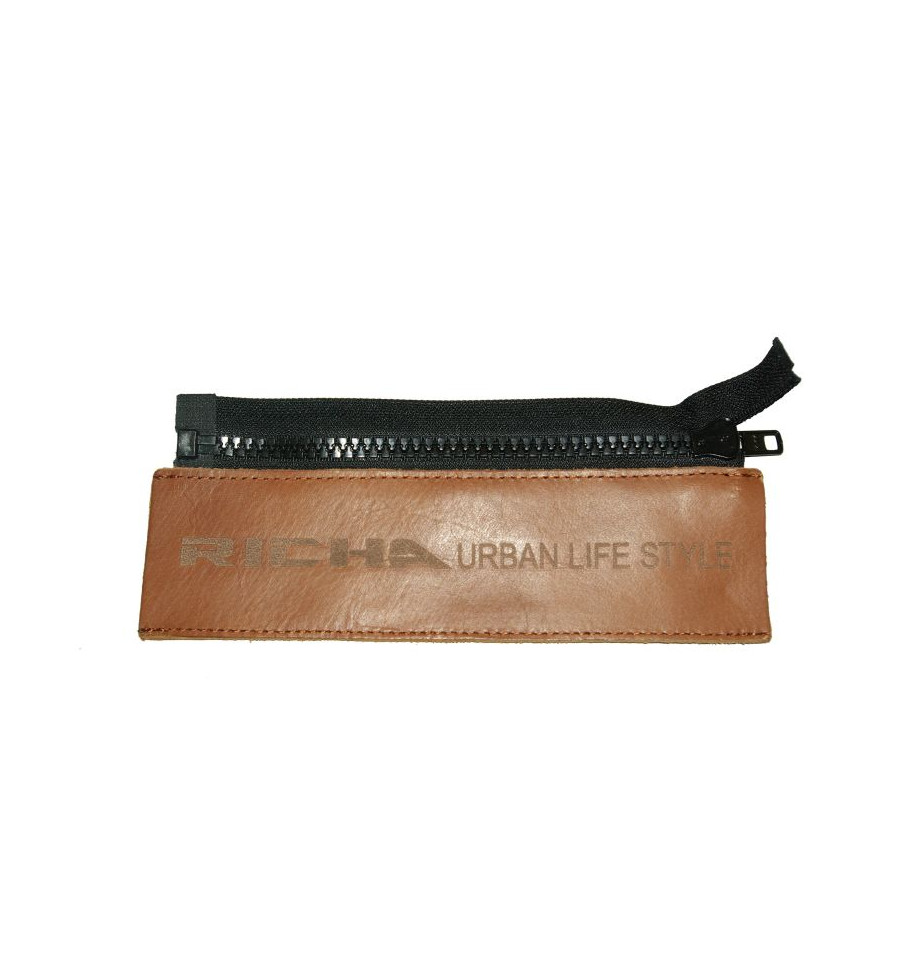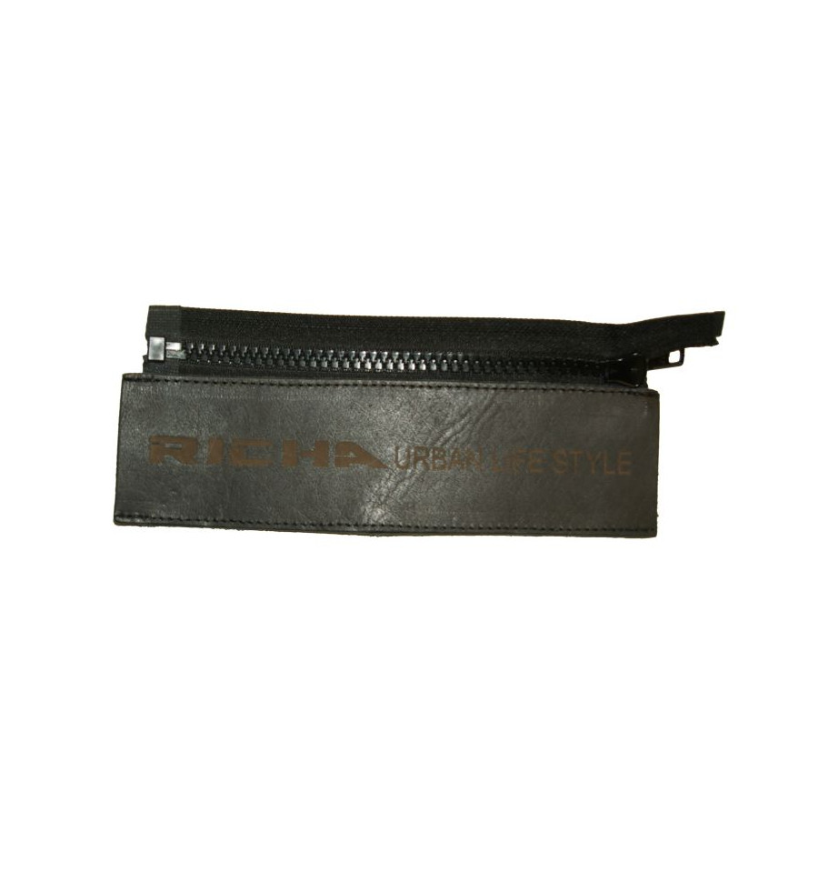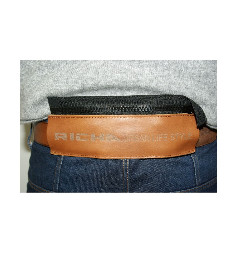 Smart lösning för att koppla ihop ett par RICHA®-jeans med en RICHA®-jacka, skinnpanel med dragkedja som Du sätter fast på ditt bälte för att kunna koppla ihop med jackans dragkedja.