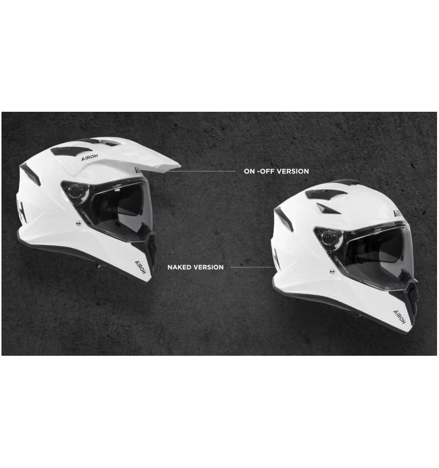 Bandit is a 2-in-1 helmet able to adapt to every need thanks to the ability to transform from an adventure to a road helmet in a few seconds. The configuration with the peak, the on-off version, is perfect for the most demanding journeys, those that might include stretches on road, dirt road and even off road, while the naked version, without the peak and with the taps supplied, is perfect for long rides on the road, thanks to a greater aerodynamics and stability at high speeds.