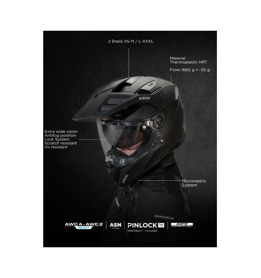 - Technology: ASN - AIROH Sliding Net System and AEFR - AIROH Emergency Fast Release
