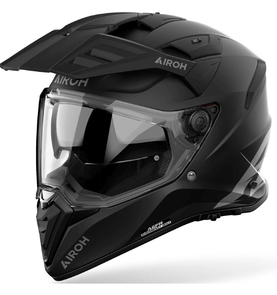 Bandit Adventure Enduro hjälm, Airoh Bandit kombinerar modern teknik, komfort och säkerhet i en sportig och aggressiv design. Med funktioner som AEFR-nödsystemet, ett reptåligt visir med UV-skydd och det innovativa ASN-systemet erbjuder denna hjälm pålitligt skydd och hög komfortnivå – perfekt för krävande förare.