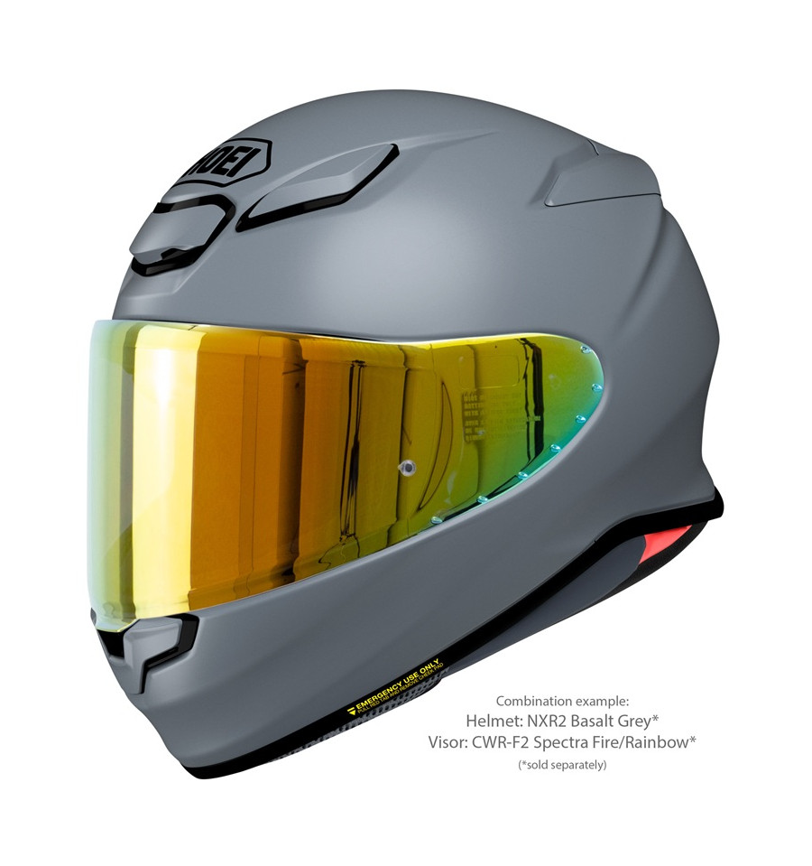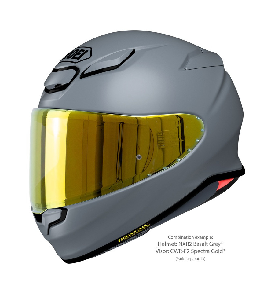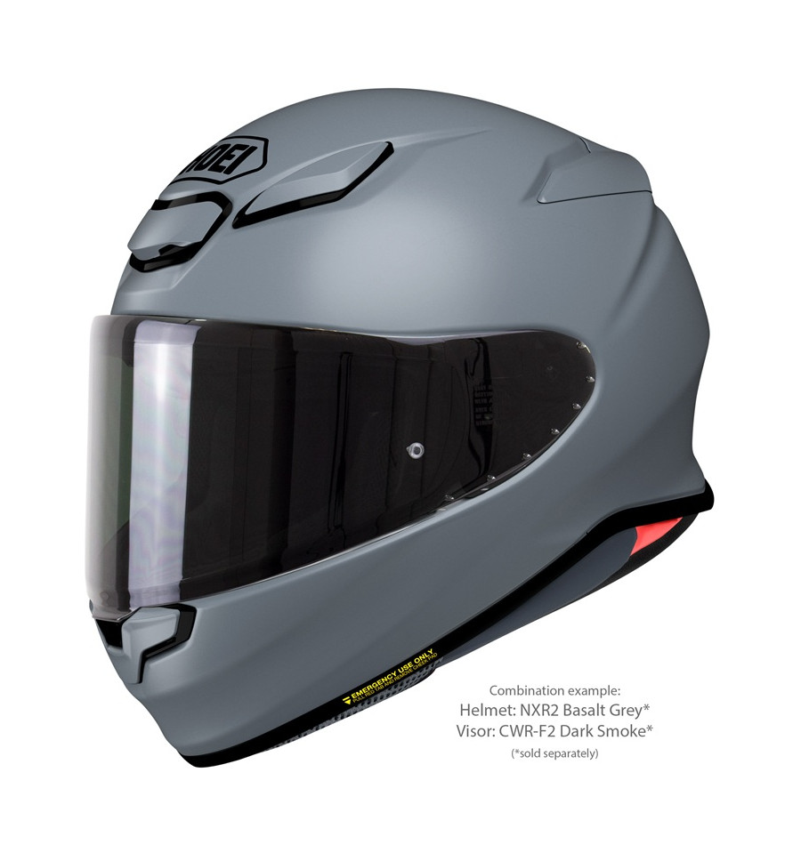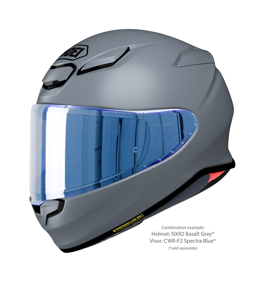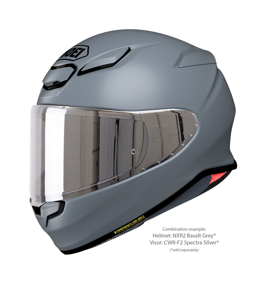 Visors in a variety of different tints and mirror coatings are available for the SHOEI NXR2 and can be used under consideration of the ECE homologation regulations. The helmet is equipped with a clear CWR-F2 visor as standard, which is available even in a photochromatic (self-tinting) version. All visors of this type can be fitted with mist-retardant PINLOCK®EVO lenses, one of which is included with the helmet.