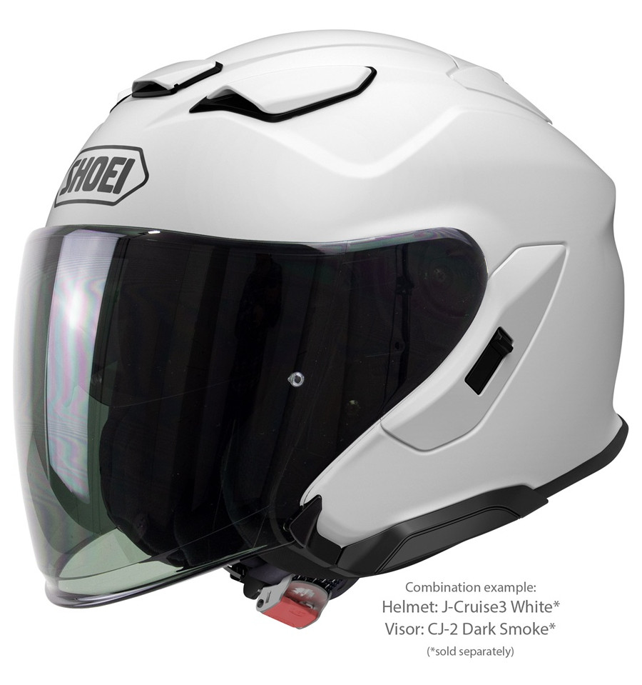 A dark tinted visor is available as an alternative for the SHOEI J.Cruise3, which can be used in compliance with ECE homologation guidelines. PINLOCK EVO anti-fog lenses, which are available separately, can be attached to the visors suitable for this helmet.