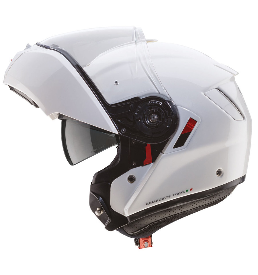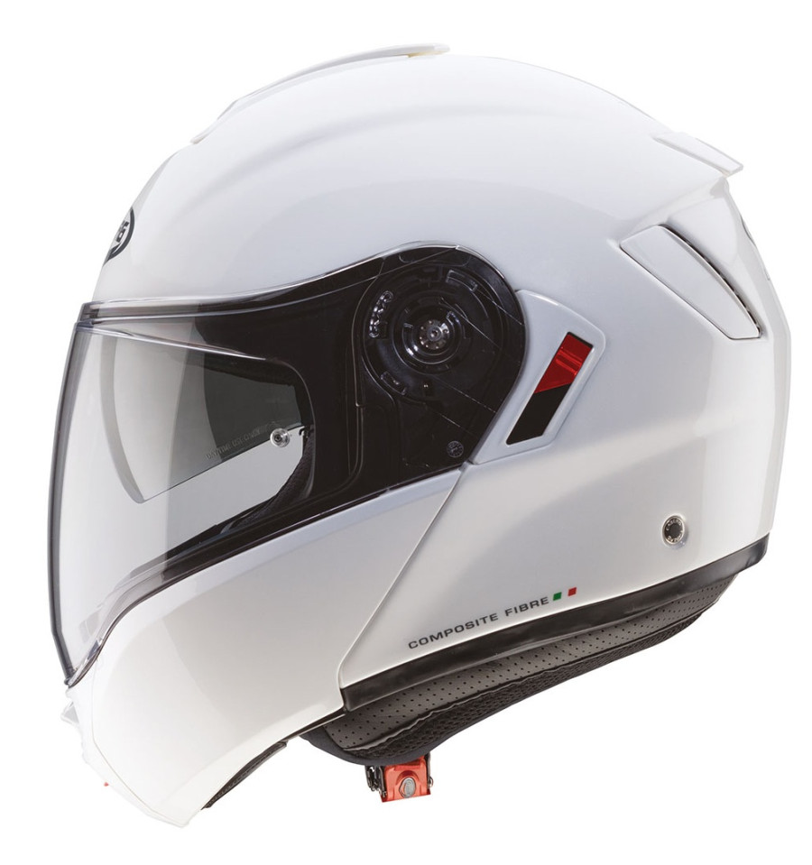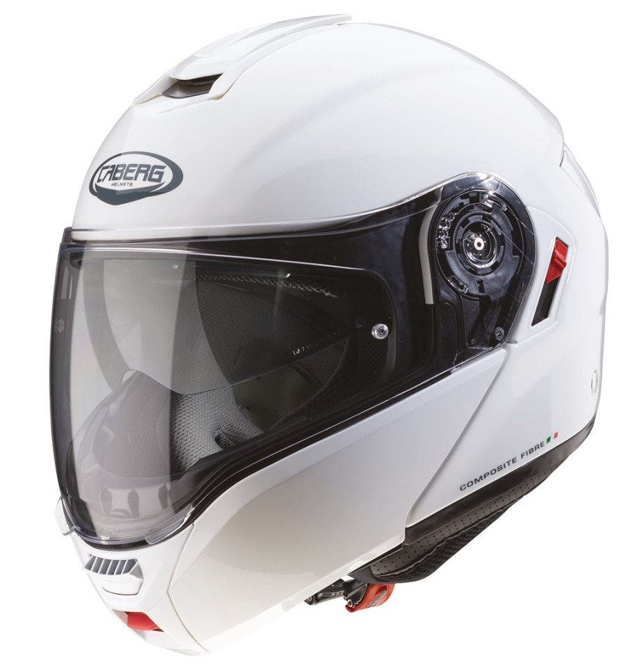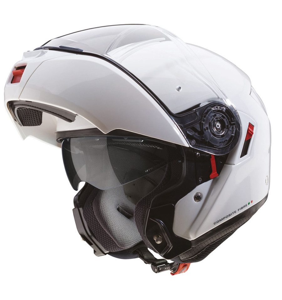 Caberg Levo vit, bekväm öppningsbar fiberkomposit systemhjälm, från Italienska hjälmtillverkaren Caberg.