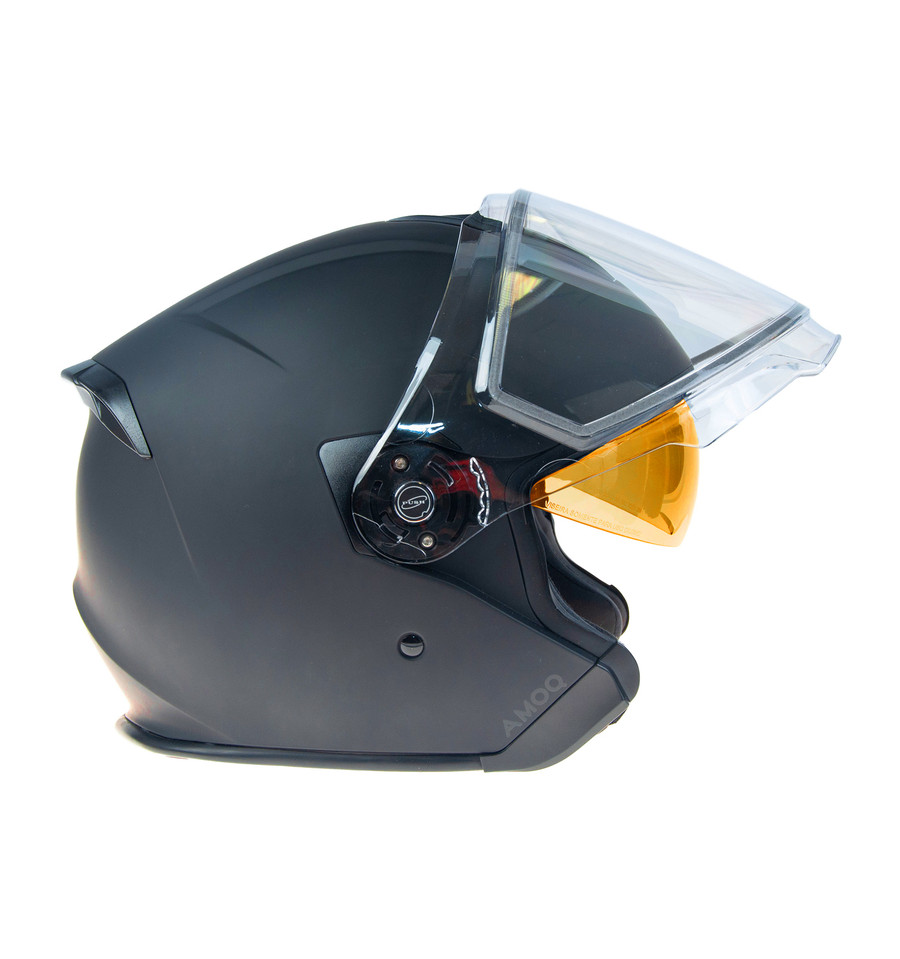 AMOQ Cluster, öppen "jethjälm" med elvisir för att få bort imma och is från visiret.