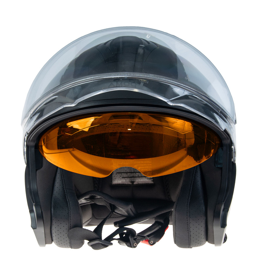 - Integrerat solvisir, ett inre upp och nerfällbart litet bärnstensfärgad solvisir som ger den bästa kontrasten i soligt/mörka åkförhållanden.