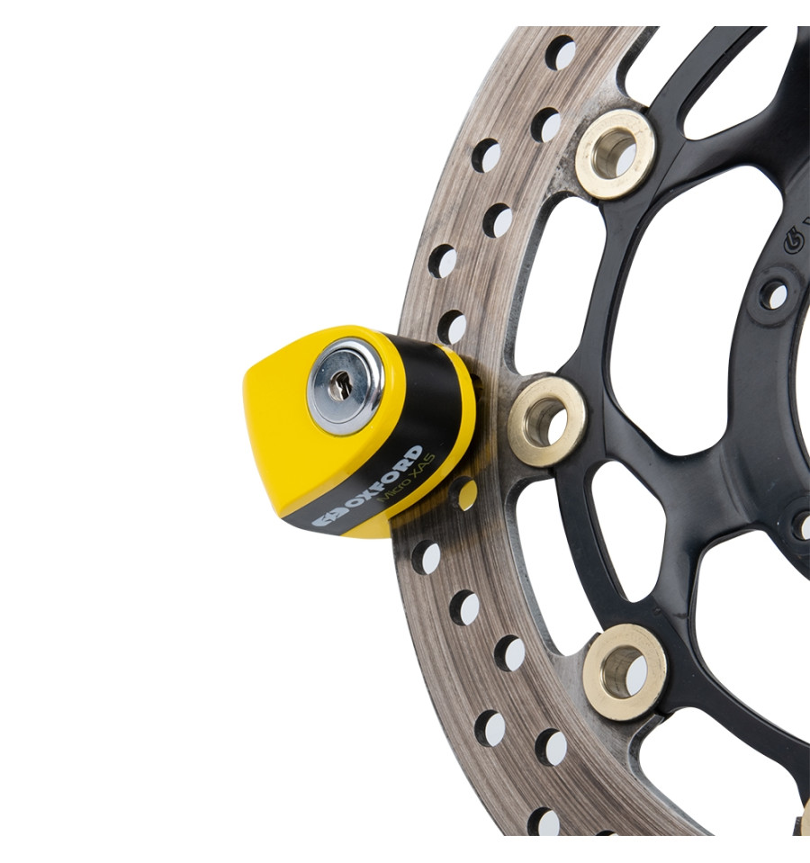 Oxford Micro XA5 Alarm Disc Lock, larmlås modell mindre, perfekt till scooter & fordon med mindre hjul.