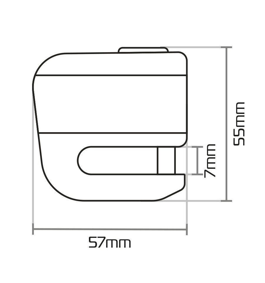 - Härdat 5,5 mm låsstift men som tyvärr är för klent för svenska låsnormer = ej godkänt lås men som går att använda på en bromsskiva med små hål typ scooters.