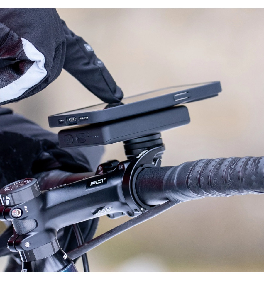 SP-Connect (plus) Wireless Powerbank, powerbank i fickformat, anslut ditt SPC+ skal med vrid-till-låsmekanismen, laddningen startar direkt utan laddkabel.