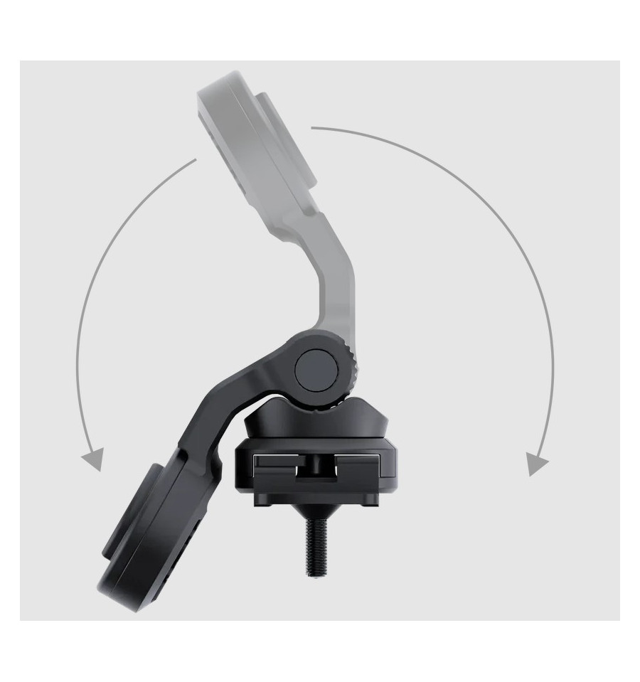 The Brake Mount Large can be rotated 360° and fixed in a suitable position. The flexible arm can be adjusted up to a maximum of 72° and down to a maximum of 60°..
