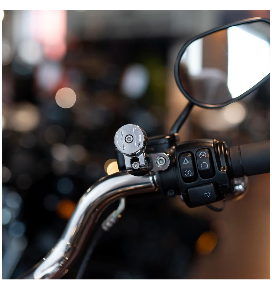 The Clutch Mount Pro Chrome is specially designed for handlebars that are not easily accessible.