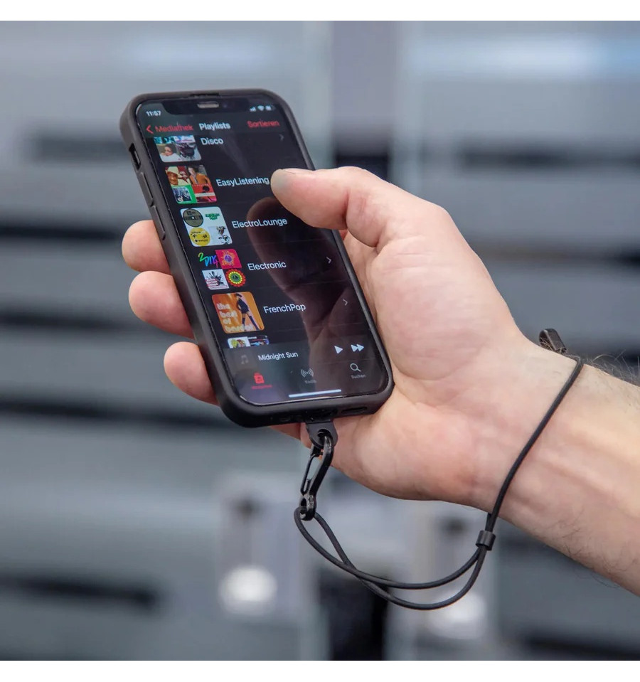 Phonecase Lanyard svart small, om du vill hålla mobilen fäst vid handleden eller styret, ser den här flexibla sladden med justerbart spänne till att din smartphone inte hamnar någonstans den inte ska. Används tillsammans med SP-Connects mobilskal.