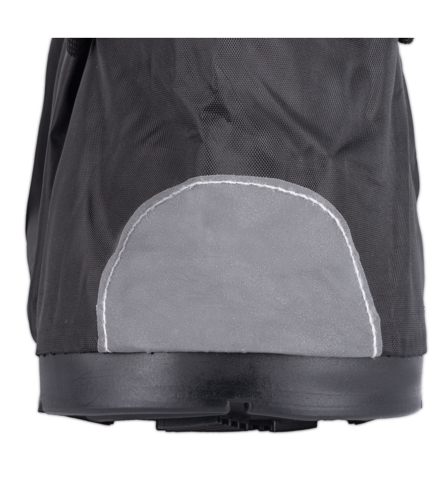 Regnstövlar som är, elastiska runt vad och häl. Gummisula för bra grepp och livslängd samt reflexer för ökad säkerhet. Extra skydd för växelpedalen.