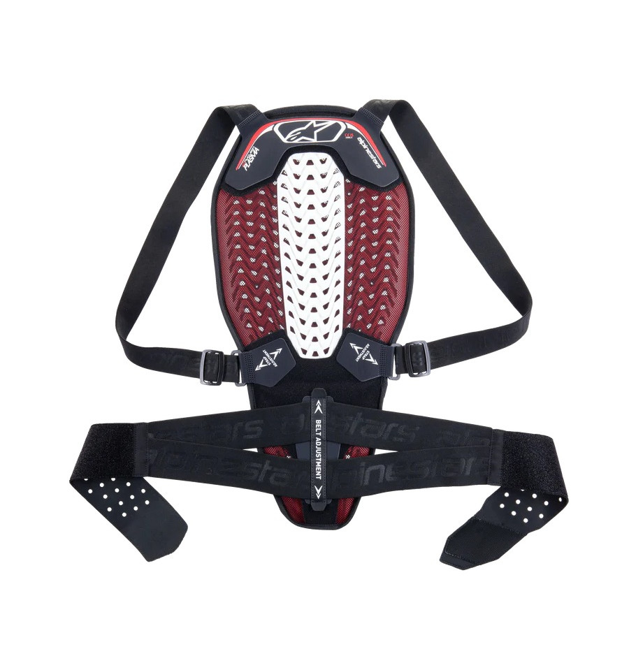 - The adjustable side straps are equipped with a V-configuration to ensure the back protector has a performance fit that follows the curvature of the spine.