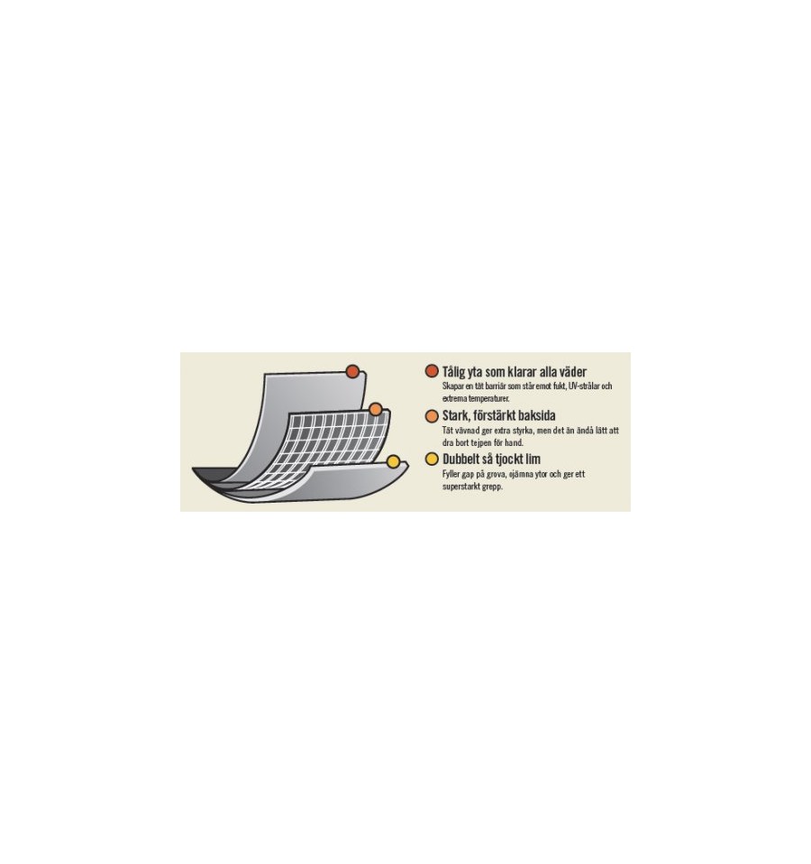 Och du kan använda den nästan hur du vill Gorilla Tape Handy Roll, Tough & Wide, White och Camo har fått en ny familjemedlem – Gorilla Tape Silver. Den är minst lika bra. Och jämfört med andra gaffatejper är den dubbelt så tjock och och har tre gånger så mycket lim. Det gör den perfekt för alla ytor – inklusive vid reparation av värme-, ventilations- eller luftkonditioneringsrör.